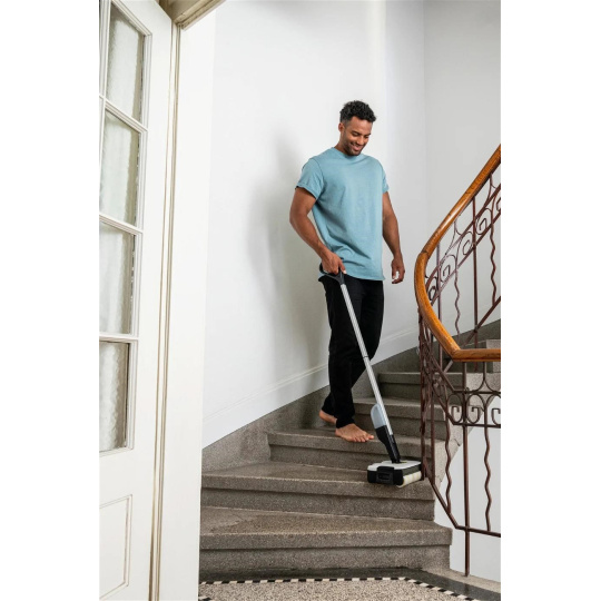 ** Čistič podlah Kärcher zkracuje dobu čištění až o 50 %, protože běžné nečistoty z domácnosti lze odstranit z tvrdých podlah v jediném kroku, aniž by bylo nutné před vytíráním vysávat.