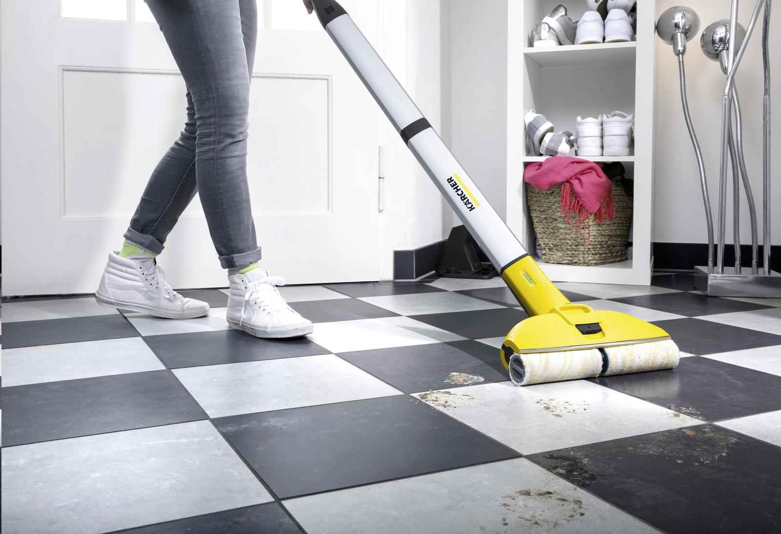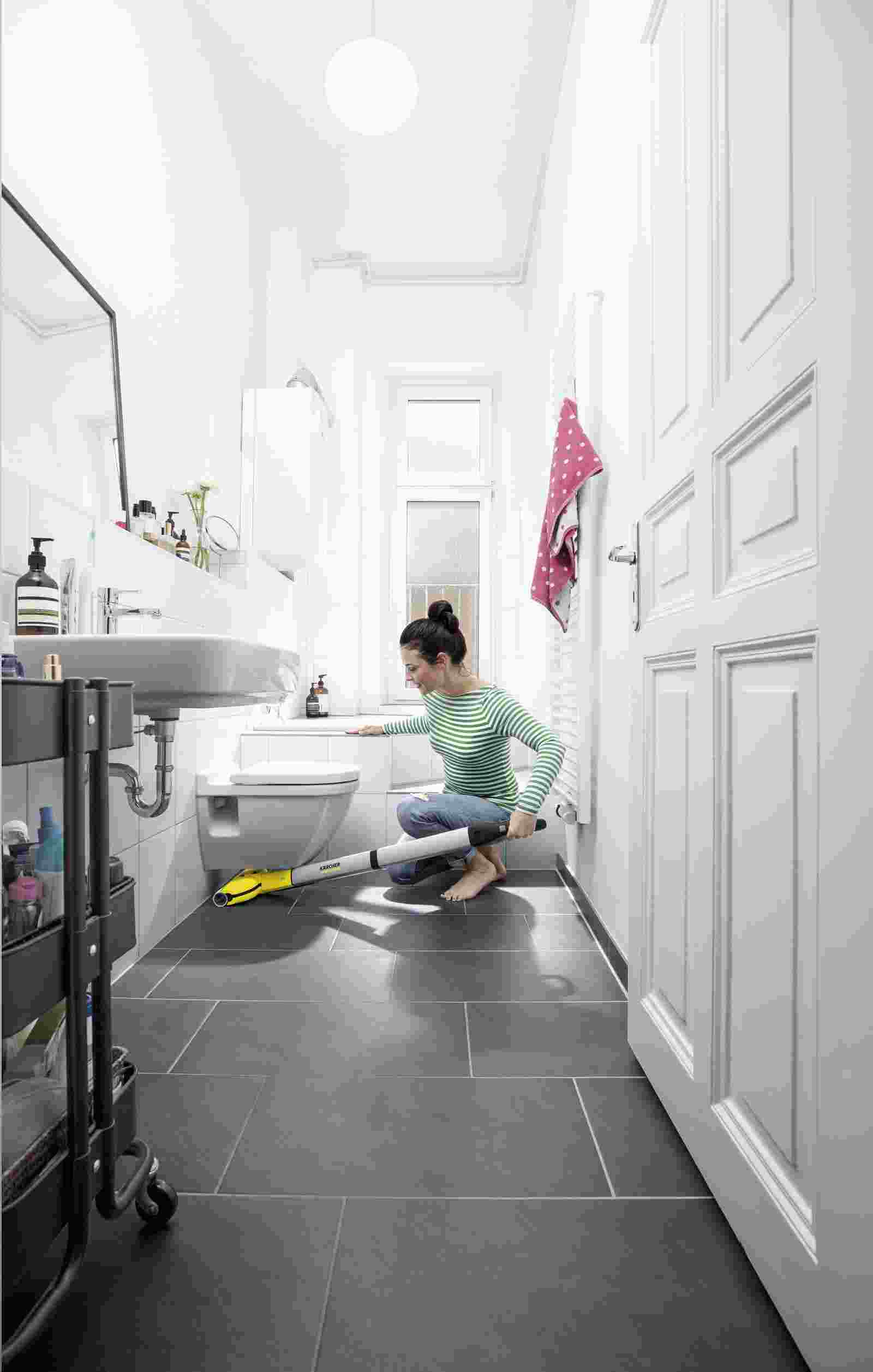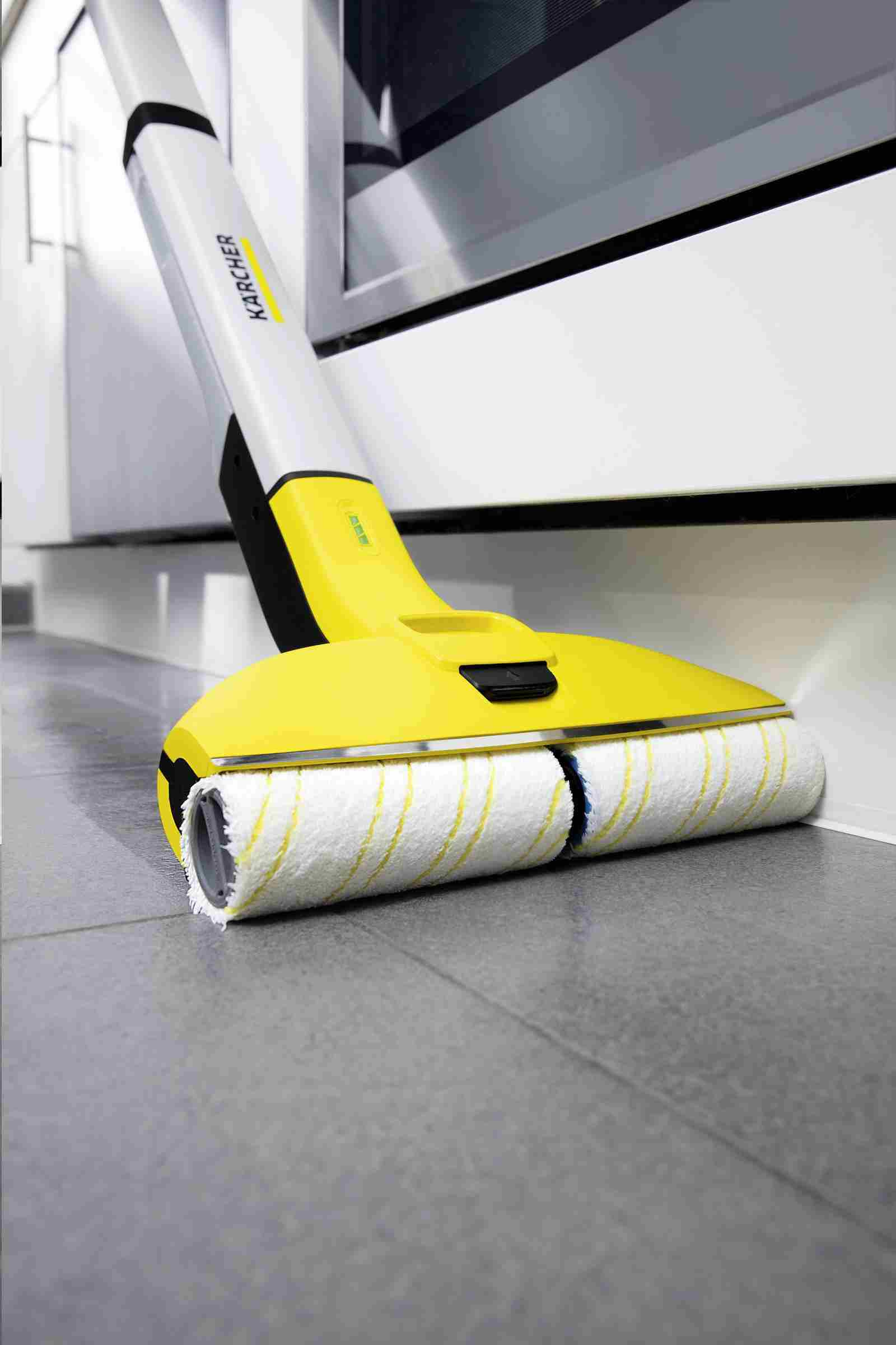 Vytírat stále čistou vodou? Bateriová podlahová myčka FC 3 Cordless se o to postará. Nečistoty jsou schromažďovány v nádobkách umístěných za válci. Rotující válce neustále zvlhčuje čistá voda, zatímco se vytřené nečistoty dostanou do nádrže špinavé vody. Podlahy jsou tak o 20 procent čistší než při použití běžného mopu. Štíhlá konstrukce myčky FC 3 Cordless zajišťuje bezproblémovou práci i pod nábytkem i její pohodlné uložení bez velkých nároků na místo. Otočný kloub se postará o bezproblémové čištění krajů i rohů. Čas potřebný pro uschnutí podlahy činí pouze cca 2 minuty, čímž je možné tuto myčku používat zcela bez starostí i na tvrdé podlahy (např. i na parkety). Výkonná lithium-ionová baterie poskytuje maximální volnost pohybu, jelikož lze vytírat zcela nezávisle na zásuvkách. A intuitivní LED kontrolka průběžně informuje o stavu baterie.