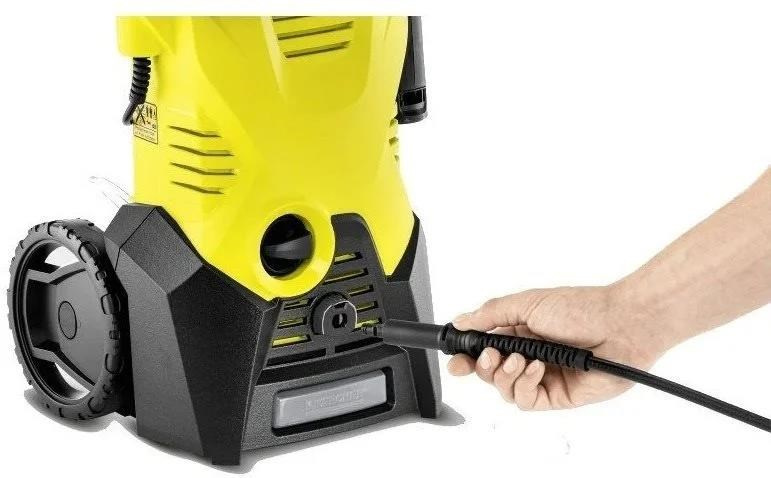 U čističe Kärcher K 3 oceníte snadné a pohodlné připojení vysokotlaké hadice. Čistič obsahuje praktickou nádržku na čisticí prostředek, se který vám půjde čištění snadněji. Aby se kabel neválel zbytečně po zemi, je Kärcher K 3 vybaven velkým kabelovým hákem.