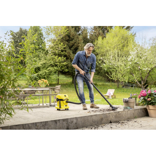 Bateriový vysavač na mokré a suché vysávání WD 2-18 je součástí 18 V bateriové platformy Kärcher Battery Power a nabízí maximální flexibilitu, kompaktní design a svobodu pohybu. Přístroj dokonale kombinuje 1,8 metru dlouhou sací hadici a klipsy podlahové hubice a dokáže během okamžiku odstranit mokré, jemné i hrubé nečistoty. Zařízení je také vybaveno robustní a nárazuvzdornou plastovou nádobou o objemu 12 litrů a také fleecovým filtračním sáčkem. Skladování sací hadice šetří místo; jednoduše jej zavěste na hlavu zařízení. Mezi další funkce patří praktická funkce fukaru pro oblasti, kde není možné vysávání, odkládací prostor na nářadí a drobnosti, otočný spínač pro snadné zapnutí a vypnutí přístroje, ergonomicky tvarované madlo pro přenášení a také "Pull & Push" uzamykací systém, který umožňuje snadné otevírání a zavírání nádoby. Parkovací poloha na nárazníku umožňuje rychlé a pohodlné uložení trubic a podlahové hubice při krátké přestávce při práci. Baterie a nabíječka nejsou součástí balení.