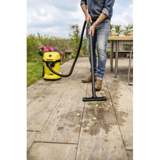 Vysávání, které nezná hranice: bateriový vysavač na mokré a suché vysávání WD 3-18, který je součástí 18 V bateriové platformy Kärcher Battery Power a nabízí maximální flexibilitu, kompaktní design a svobodu pohybu. Přístroj dokonale kombinuje 2 metry dlouhou sací hadici a klipsovou podlahovou hubici a dokáže během okamžiku odstranit mokré, jemné i hrubé nečistoty. Zařízení je dále vybaveno robustní a nárazuvzdornou plastovou nádobou o objemu 17 litrů, jednodílným kartušovým filtrem a také fleecovým filtračním sáčkem. Skladování sací hadice šetří místo; jednoduše jej zavěste na hlavu zařízení. Mezi další funkce patří praktická funkce fukaru pro oblasti, kde není možné vysávání, odkládací prostor na nářadí a drobnosti, otočný spínač pro snadné zapnutí a vypnutí přístroje, ergonomicky tvarované madlo pro přenášení a také "Pull & Push" uzamykací systém, který umožňuje snadné otevírání a zavírání nádoby. Parkovací poloha na nárazníku umožňuje rychlé a pohodlné uložení trubic a podlahové hubice při krátké přestávce při práci. Baterie a nabíječka jsou součást balení.