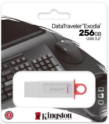 Disk DataTraveler® Exodia značky Kingston je vybavena výkonným rozhraním USB 3.2 1. generace, které zajišťuje snadný přístup k notebookům, stolním počítačům, monitorům a dalším digitálním zařízením. Disk DT Exodia umožňuje rychlé přenosy a praktické ukládání dokumentů, hudby, videí a dalšího. Disk má praktickou konstrukci a módní barevné provedení. Díky tomu je ideální pro každodenní využití v práci, domácnosti, ve škole a vlastně kdekoli, kam potřebujete svá data odnést. Disk DT Exodia je k dispozici s kapacitou až 256GB* a získáte k němu pětiletou záruku, bezplatnou technickou podporu a pověstnou spolehlivost značky Kingston®.