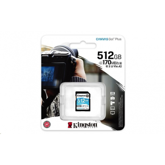 Kingston SDXC karta 512GB Canvas Go! Plus, R:170/W:90MB/s, Class 10, UHS-I, U3, V30