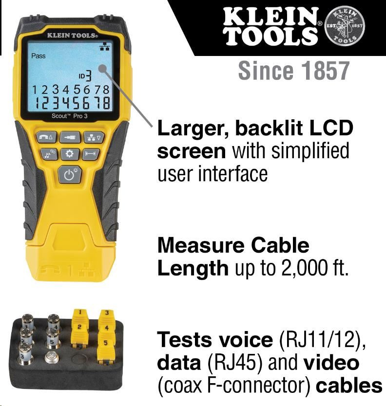 KLEIN TOOLS - VDV Scout® Pro 3 Tester Kit - 5x RJ45, 5x F-konektor