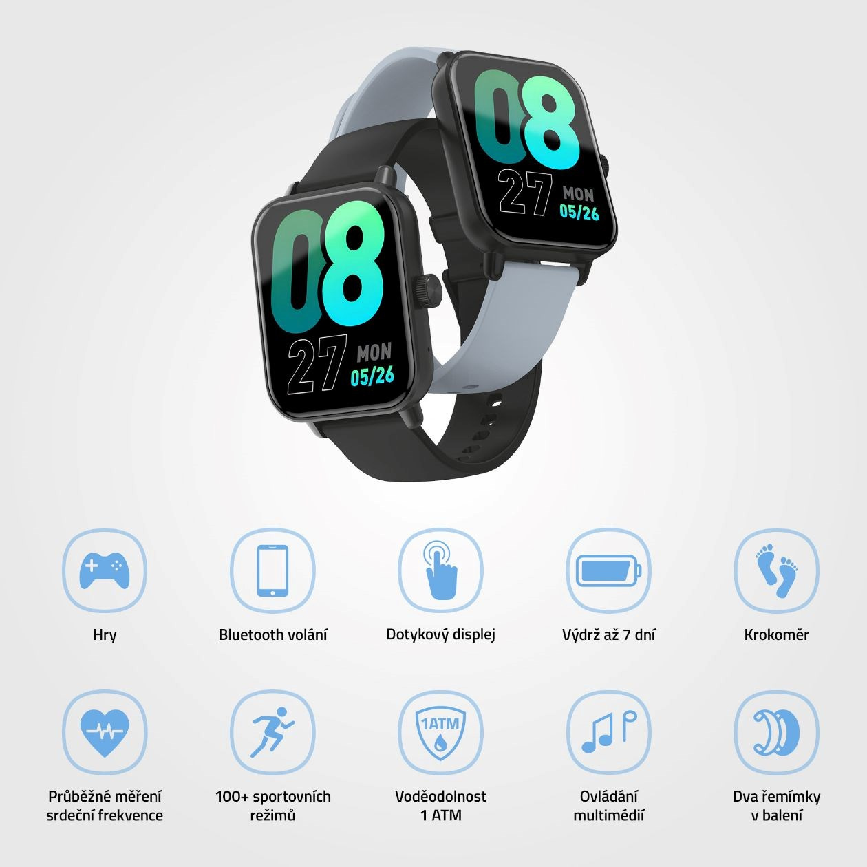 | Dva řemínky v balení | Ano (černý a šedý) |