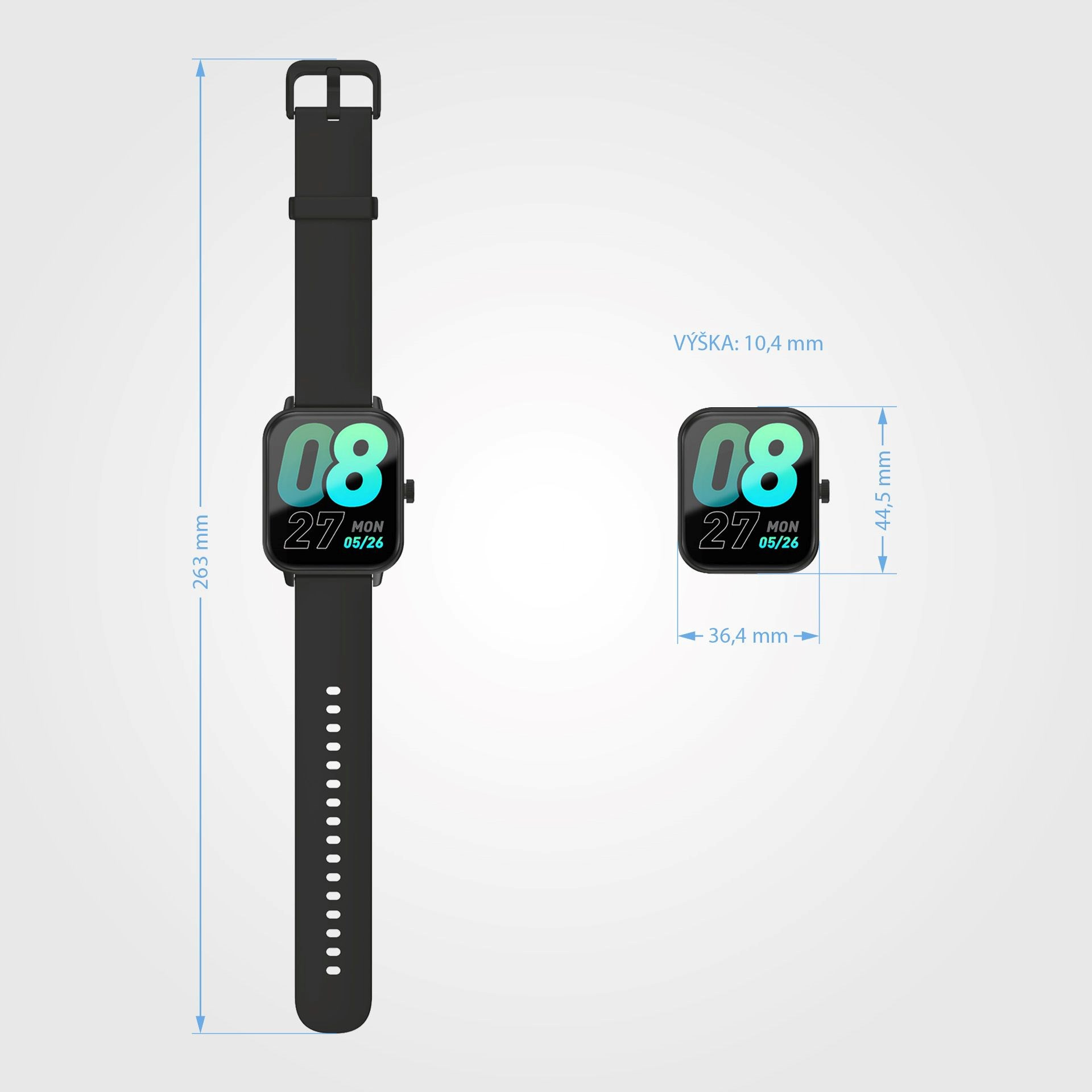 | Rozměry hodinek včetně pásku | 263×36,4×10,4 mm |
