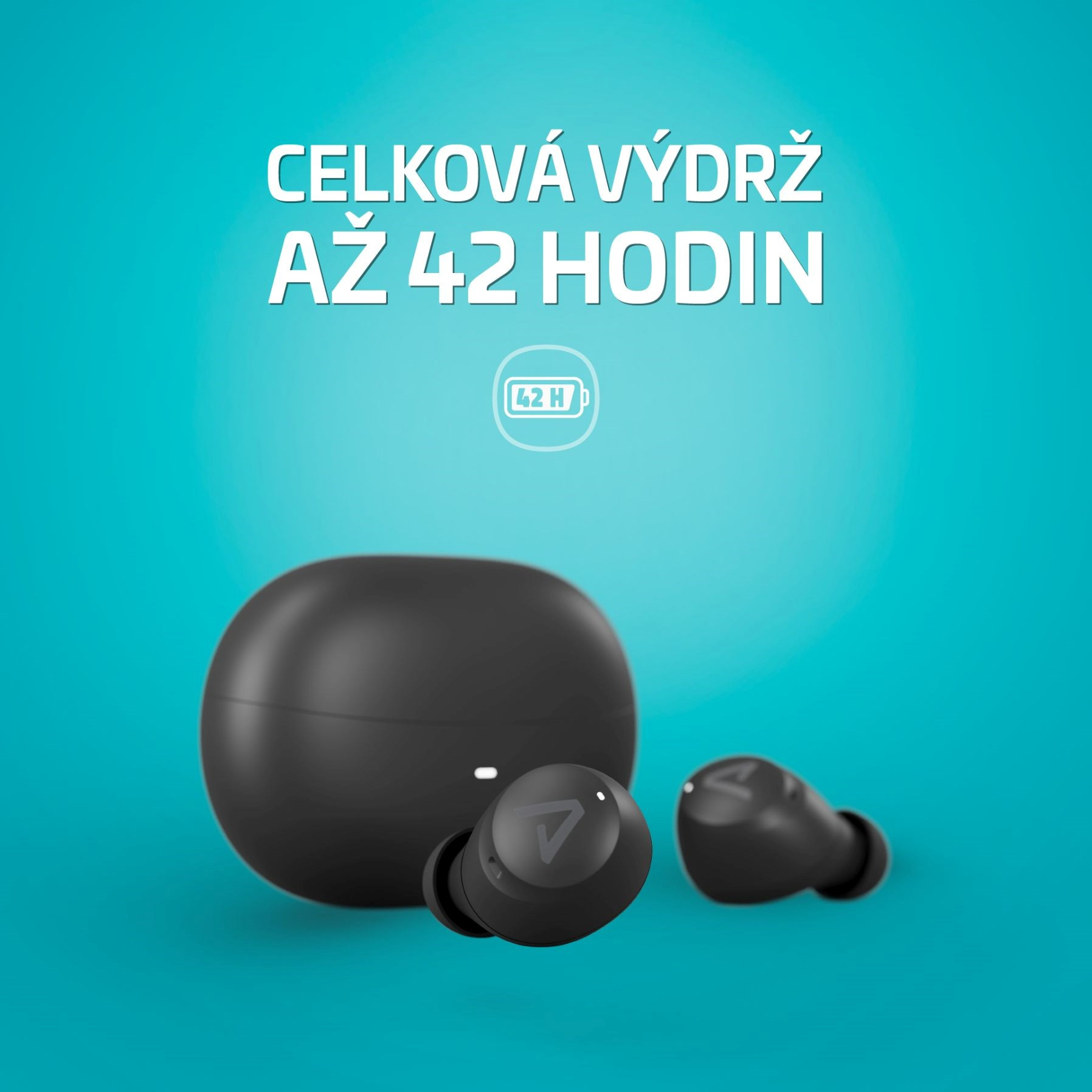 42 hodin na jedno nabití, kdy až 10 hodiny dají sluchátka a dalších 32 hodin krabička, to už je slušný nářez.