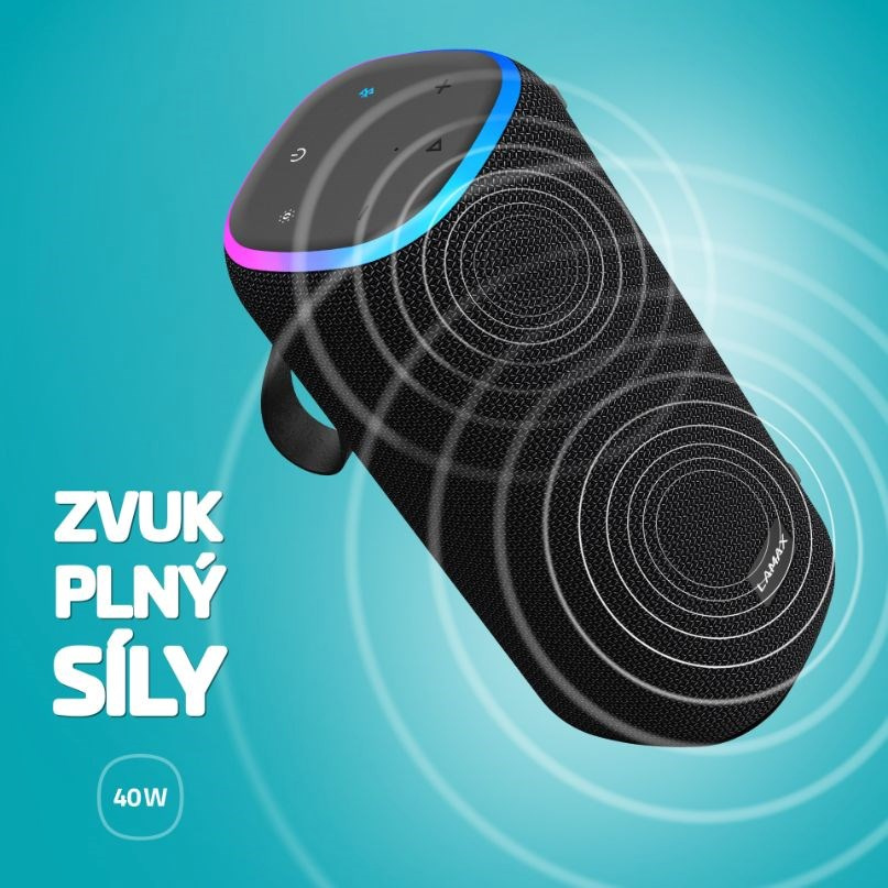 Naplň si život zvukem, co tě zcela pohltí, ať už děláš cokoliv. Jestli posloucháš muziku, film nebo třeba podcasty je jedno, dvoupásmové reproduktory dají všemu zcela nový rozměr. Klidně uspořádej party, výkon 40 W ji odpálí do nebes. A když k tomu rozehrají svoji hru až 4 nastavitelné LED efekty, dostane akce ten správnej vibe. Naprosto nezapomenutelná se stane, když využiješ True wireless stereo funkci a znásobíš výkon připojením dalšího stejnýho repráku.