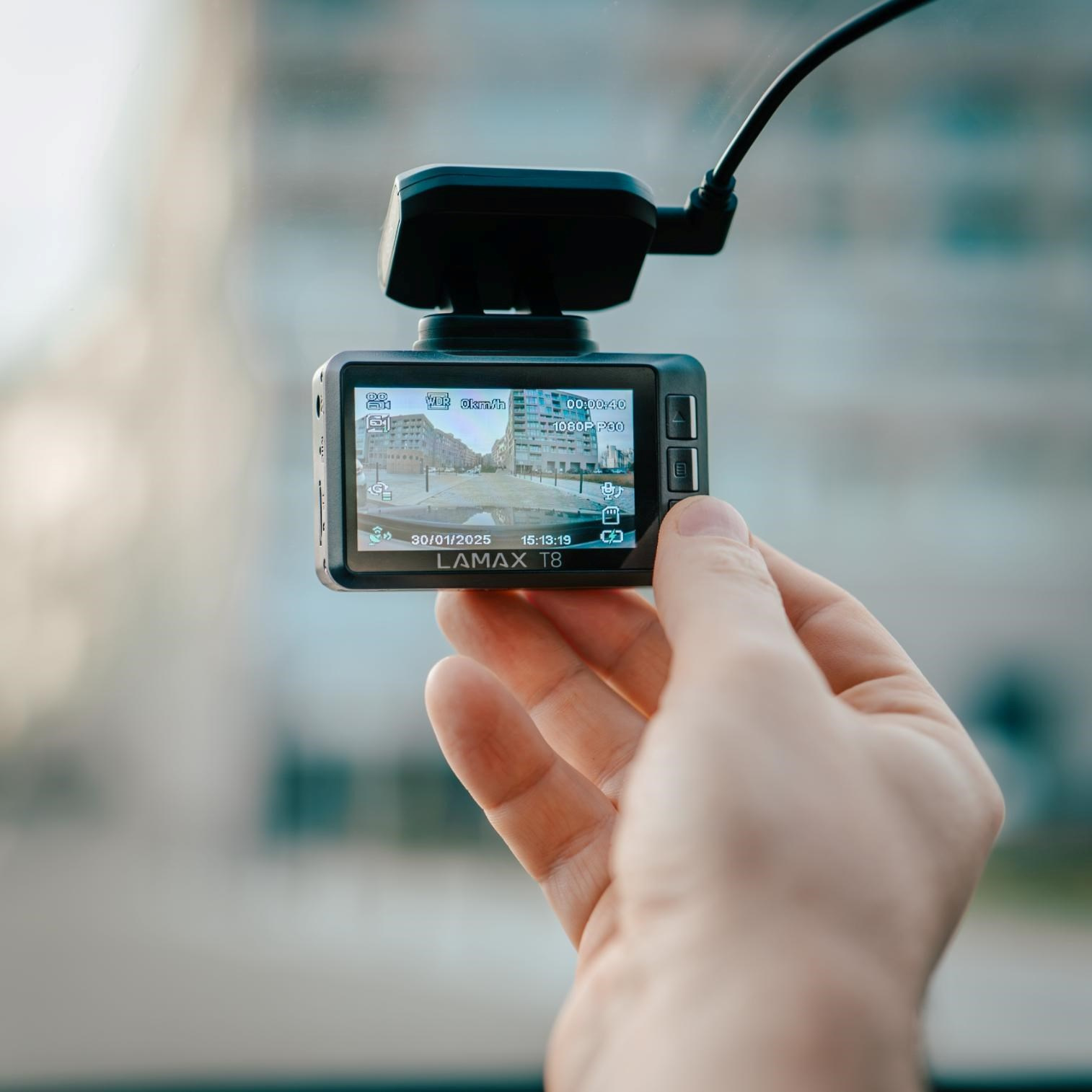 Jezdíš často, jezdíš rád, ale když vidíš tu dopravní džungli, potřebuješ trochu jistoty? Autokamera LAMAX T8 s 2K rozlišením ti ji poskytne. Její 170° úhel záběru zachytí dění před autem a v jeho okolí, takže když se něco přihodí, máš na až 128GB microSD kartě jasný důkaz pro všechny úřady a orgány. Spolehlivá detekce radarů přispívá k bezpečnější jízdě, a navíc pokuty fakt nikdo nechce. Manipulaci s kamerou a její stabilitu zajišťuje magnetický GPS držák, na který kameru zacvakneš a na 2.4" displeji si jednoduše navolíš vše potřebné. České a přehledné menu celý proces usnadňuje. Kameru můžeš přes Wi-Fi propojit i s telefonem a apce pak záznamy spravovat. Pokud tě vždycky trápila životnost baterie, tak na ni zapomeň, tahle kamerka je vybavená superkondenzátorem, který zvládne i střídaní teplot, když pojedeš od moře za polární kruh. Nabíjení probíhá přes moderní USB-C. Zachyť každý okamžik NA MAX.