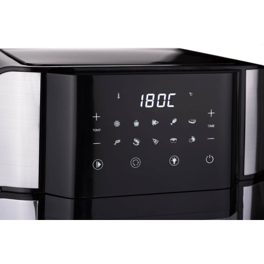 Horkovzdušná trouba s fritézou, objem 15 l, 10 automatických programů, manuální nastavení, kuchařka v balení, digitální displej, pečení, sušení, grilování, dotykové ovládání, teplota 80 – 200°C, čas 5 – 60 min, grilovací mřížka, rotační fritovací koš, rožnicí jehla na kuře, 2 klasické mřížky, odkapávací tác, odnímatelná dvířka pro snazší čištění, příprava 3 pokrmů najednou, odnímatelné části vhodné do myčky.... více
