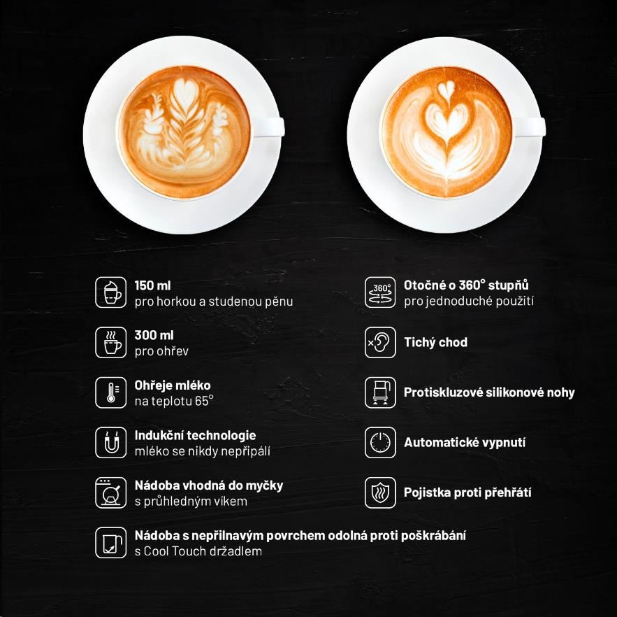 Pěnič mléka Lauben je vybaven funkcí automatického vypnutí a ochranou proti přehřátí. Nemusíte se tedy bát příliš vysoké teploty mléka nebo pěny. Díky indukční technologii ohřevu se mléko nikdy nepřipálí. Potěší vás jistě i možnost mytí v myčce nádobí a tichý chod, který oceníte hlavně po ránu.