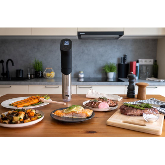 Chcete si pochutnat na vynikajícím, zdravém jídle, jehož příprava vám nezabere celé odpoledne? Chcete si doma připravit maso, co se bude rozpadat na jazyku, ale přitom neztratí na objemu a vždy si zachová svůj tvar a barvu? Nemusíte nutně chodit do restaurace. Lauben Smart Sous Vide je ideálním pomocníkem do kuchyně pro každého, kdo chce ušetřit hodiny strávené u sporáku, a přesto dostat z ingrediencí maximum. Díky metodě vaření sous vide si připravovaná jídla zachovají všechny chutě, vůně a živiny, o které nechcete při vaření přijít. Vařič jednoduše zapnete a ponoříte do hrnce s potravinami připravenými ve speciálních zip lock sáčcích, které jsou součástí balení. O ostatní už se Lauben Smart Sous Vide postará, vy si jen vychutnáte famózní výsledek.