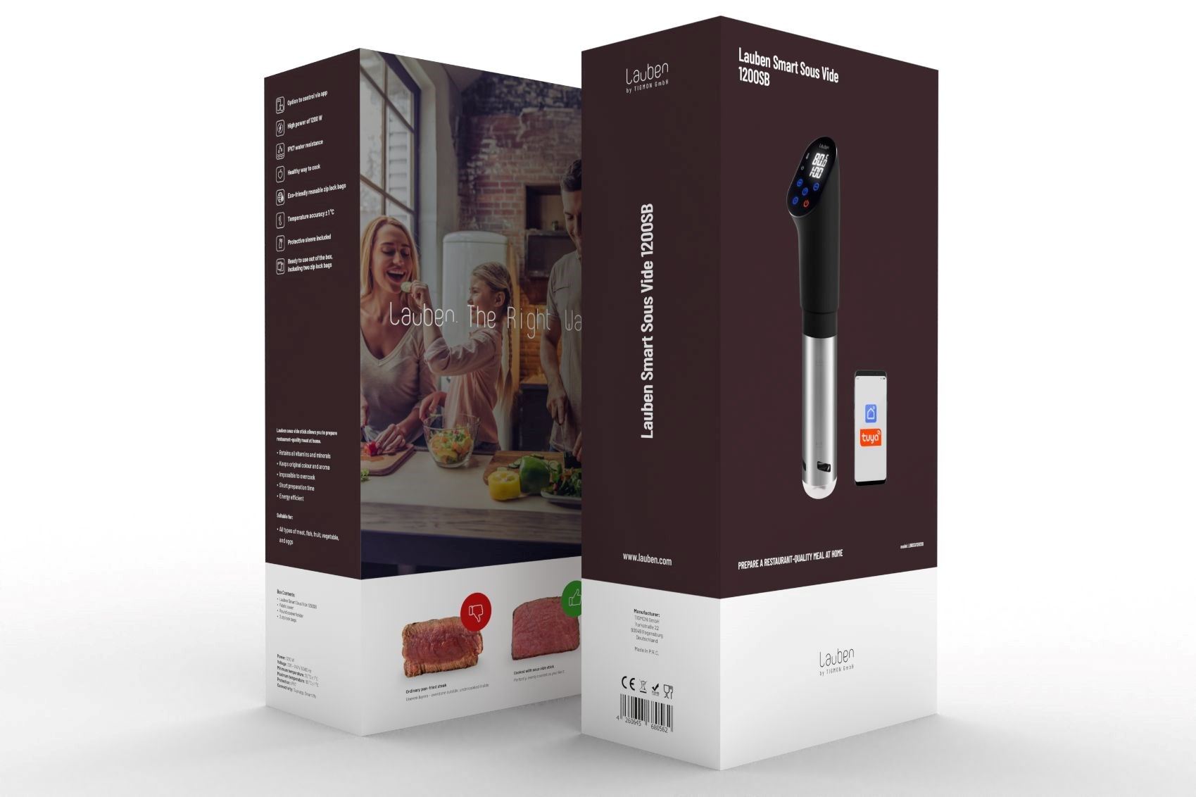 Ovládání Lauben Smart Sous Vide je hračka, a to i díky možnosti ovládání přes aplikace Tuya nebo Smart Life. Díky tomu máte vše pod kontrolou – aktuální teplotu, zbývající čas a můžete se dokonce inspirovat mnoha recepty přímo v aplikacích. Pro ty, kteří preferují klasiku, je k dispozici také dotykový displej. Nemusíte být žádný odborník, abyste s tímto vařičem vykouzlili kulinářská mistrovská díla. Stačí naskenovat QR kód na obalu a během chvilky se naučíte vše potřebné díky přehlednému video návodu. A co víc, Lauben Sous Vide se stane nejen praktickým pomocníkem, ale i stylovým doplňkem vaší kuchyně díky svému elegantnímu designu.