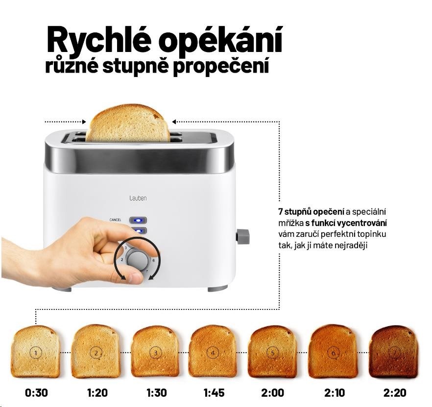 rticle id="description_lauben_2019-06-25"> Lauben Toaster T17WS Vychutnejte si dokonalou snídani Jste-li milovníky křupavých toastů a topinek, Lauben Toaster posune vaše snídaně na vyšší úroveň. Na výběr máte ze 7 stupňů opečení, takže ať máte topinky raději propečené až do hněda, nebo jen lehce zlatavé, ... více