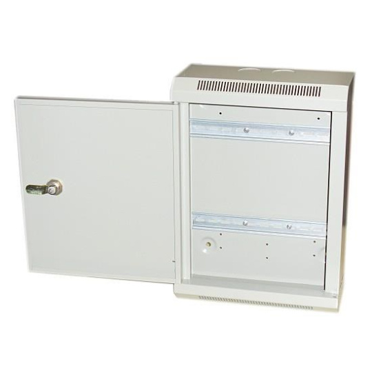 Kovový rozvaděč pro vnitřní instalace s DIN lištou. Rozvaděč je opatřen kovovým zámkem a ventilačními otvory.