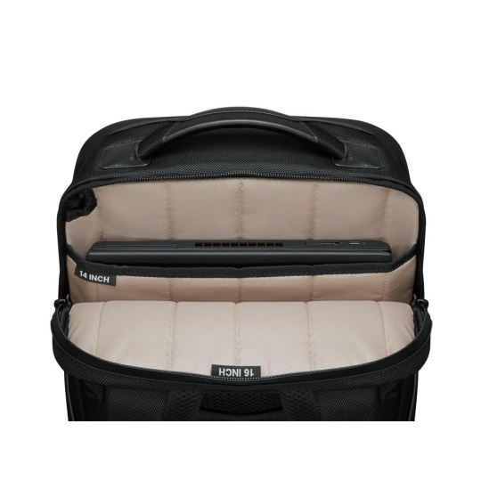 - Dobře polstrovaná přihrádka na notebooky do velikosti 16" a samostatná polstrovaná kapsa na další 14" notebook.