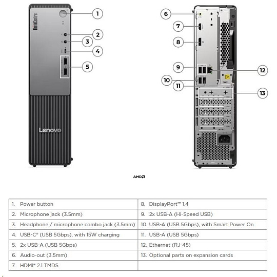 LENOVO PC ThinkCentre neo 55s G6 SFF - Ryzen 5 220,8GB,512SSD,HDMI,DP,Radeon 740M,W11P,3Y Onsite