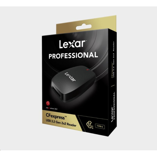 V balení: Čtečka karet Lexar CFexpress včetně kabelu USB 2 v 1: USB Type-C na Type-A / USB Type-C na Type-C
