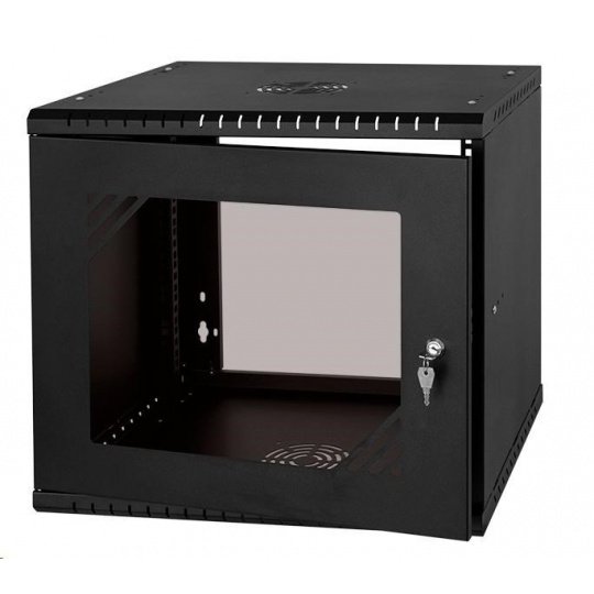 LEXI-Net 19" nástěnný rozvaděč Basic 9U 525x450, skleněné dveře, bez zad, rozložený, černý