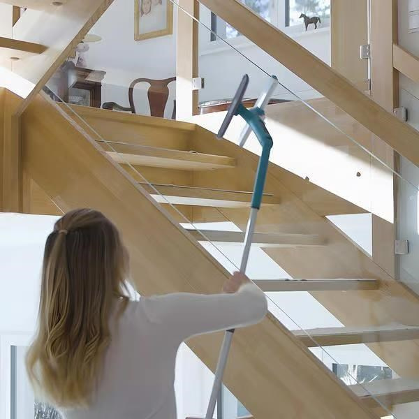 Díky pohyblivému kloubu si nastavíte úhel zařízení podle svého pohybu – šetří to vaše klouby. Vysouvací teleskopická tyč (97–130 cm) usnadní čištění vysokých ploch – bez zbytečného natahování.