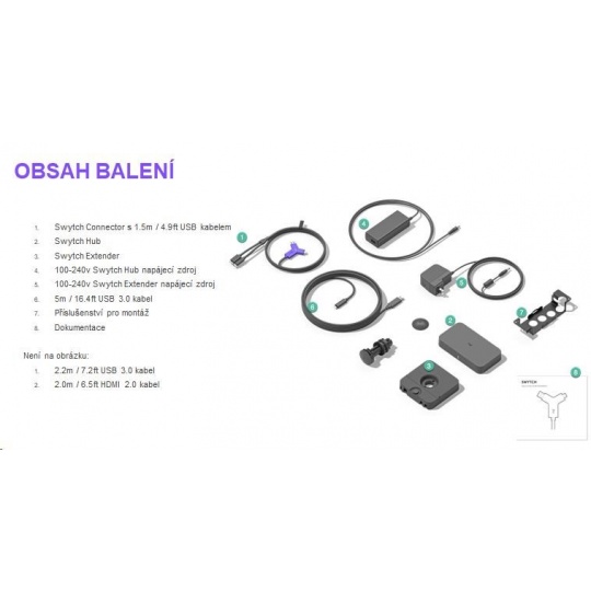 - Rozbočovač Swytch: Kompatibilní s držákem na PC Logitech (není součástí dodávky)