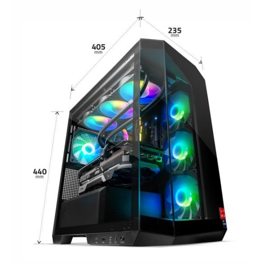 - Skříň: MSI MPG PANO M100R – Moderní a dobře větraná skříň s dostatkem prostoru pro komponenty i budoucí upgrady.
