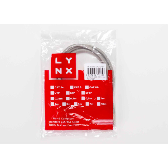 LYNX patch kabel Cat5E, FTP - 0,5m, šedý (prodej po 10 ks)