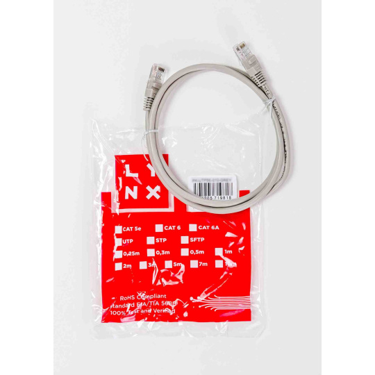 LYNX patch kabel Cat5E, UTP - 1,5m, šedý