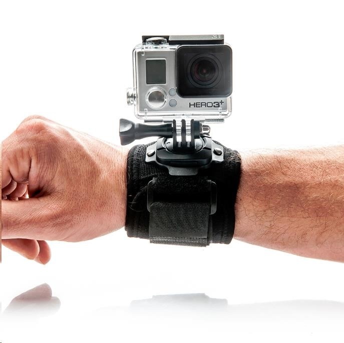 Držák na zápěstí pro kamery GoPro. Pomůže vám zachytit svět z mnoha různých úhlů. Využijete ho při sportech, při kterých potřebujete volné ruce. Držák je vyroben z kvalitního materiálu a umístíte ho i přes bundu a rukavice. Kameru pak můžete nosit jako hodinky, a tak pořizovat skvělé záběry. Kamerou lze navíc otáčet o 360° a kdykoliv využít pojistku, která zabrání dalšímu, nechtěnému otočení.