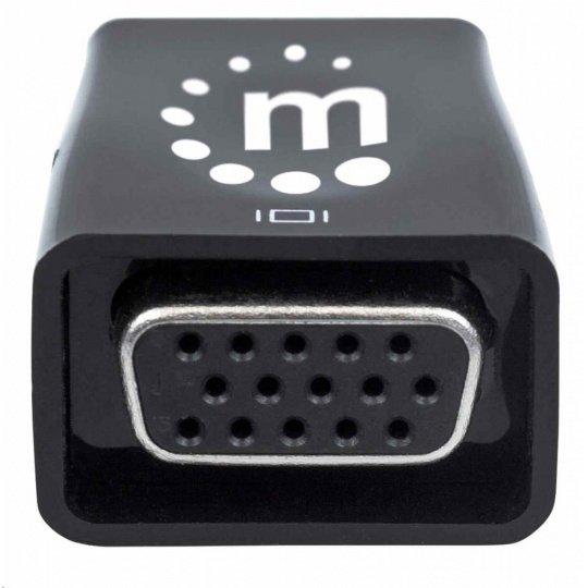 The Manhattan HDMI to VGA Micro Converter establishes a fast, simple and convenient link between a newer HDMI-equipped desktop, notebook computer or other media source and an existing VGA monitor, projector or other display device. The Manhattan HDMI to VGA Micro Converter is easy and quick to install and requires no complicated configuration or setup. This converter helps extend the service life of legacy VGA display equipment so you can get the most out of your investment and fully realize its value. The Manhattan HDMI to VGA Micro Converter offers a low-power, cost-effective and reliable solution so users can transition to HDMI bandwidths, resolutions, Deep Color and more without the expense of upgrading to newer and costly monitors and projectors. Its integrated, all-in-one design helps achieve a compact, integrated solution that eliminates unnecessary cables, tangles and clutter to keep installations and workspaces neat and orderly. Its 3.5 mm stereo port allows the converter to transmit audio to an external audio device, and its Micro-USB port allows for additional power if required.