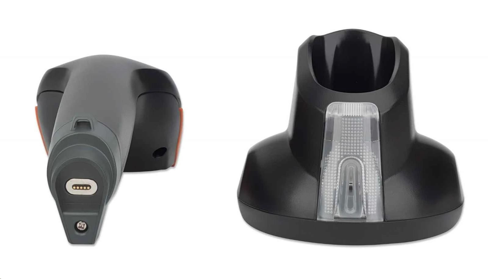 MANHATTAN Barcode Scanner BT Scanner and Cradle Black USB HID, black, Retail Box
