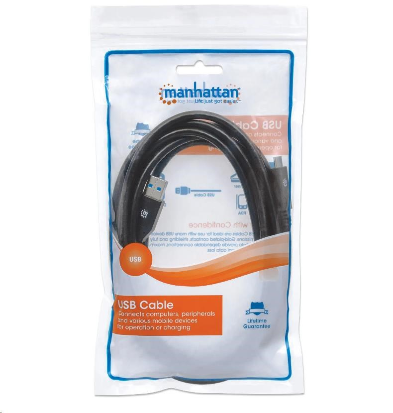 MANHATTAN Kabel SuperSpeed USB-C na USB, 3m, černá