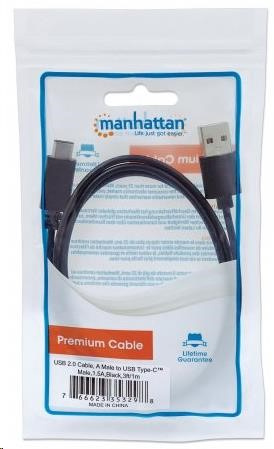 MANHATTAN Kabel USB 2.0 C, C Male / A Male, 1m, černý