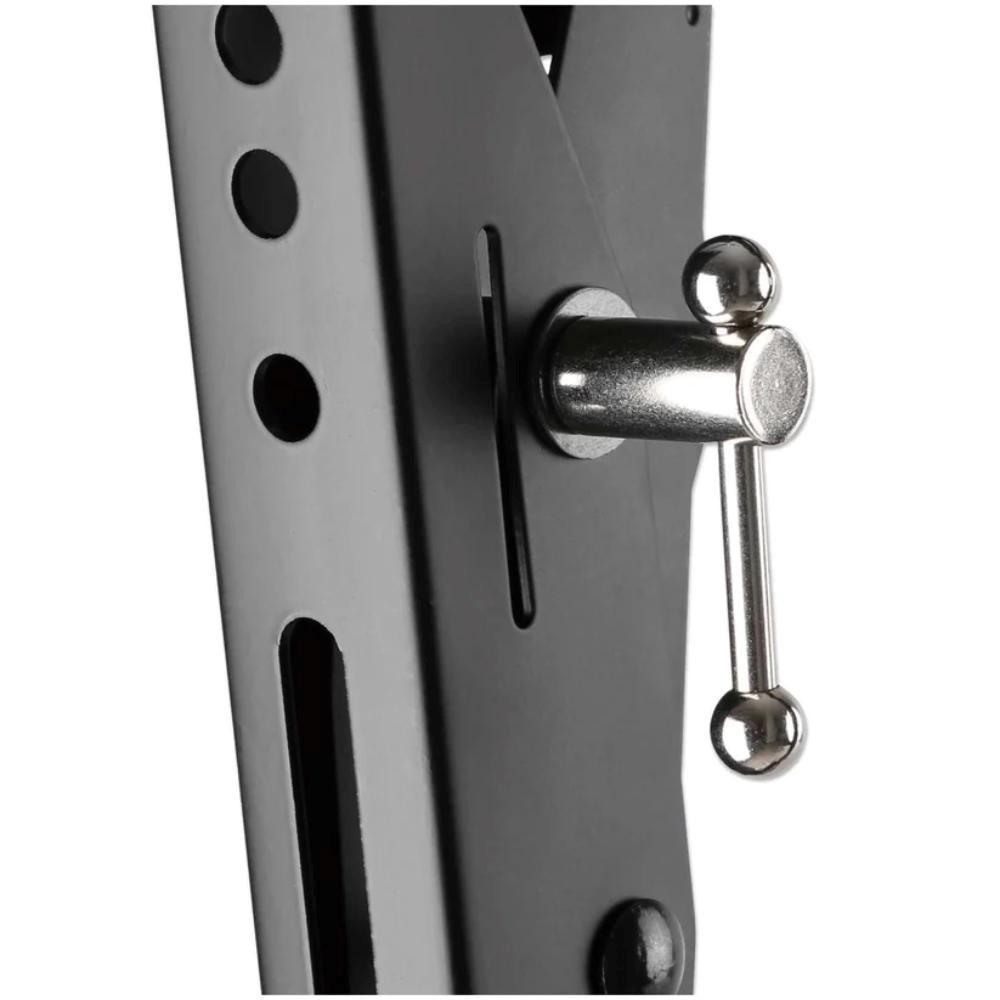 This tilting TV Wall Mount from Manhattan safely holds your TV and offers a toolless +3 to -12° tilt adjustment with the turn of a knob for optimized views. Constructed of 2 mm thick reinforced powder-coated steel, it fits flat and curved LCD, OLED or plasma TVs up to 100" and weighing up to 70 kg (154 lbs.) with VESA compliance up to 800x400. You're all set for a confident above-the-floor installation with an included bubble level that helps get the mount perfectly horizontal on the wall, and intuitive snap-in spring locks with release cords let you easily and securely put the TV in place. It's ideal for residential, office, hospitality, classroom, conference room, digital signage and other commercial applications. An anti-theft opening allows you to attach a padlock to prevent your valuable display from being removed and stolen. p>