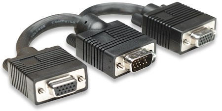 • Splits an SVGA connection between two monitors