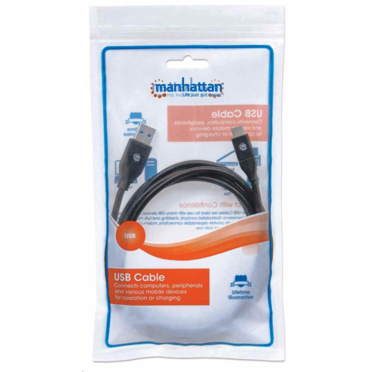 Manhattan SuperSpeed USB Type-C Cables easily connect USB Type-A peripherals and accessories to Type-C device ports. Ideal for use with any USB Type-A plug-and-play device, these cables support data transfer rates of up to 5 Gbps on Windows and Mac systems for fast, reliable transmissions and current of up to 3 amps. Nickel-plated contacts, shielding and fully molded boots with strain relief help provide dependable connections, maximum conductivity and minimal data loss with reduced EMI interference.