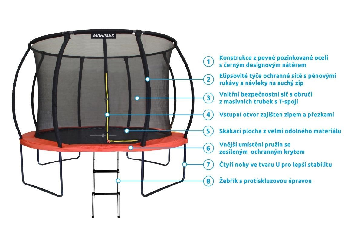 Marimex Premium trampolína 366 cm + vnitřní ochranná síť + schůdky ZDARMA