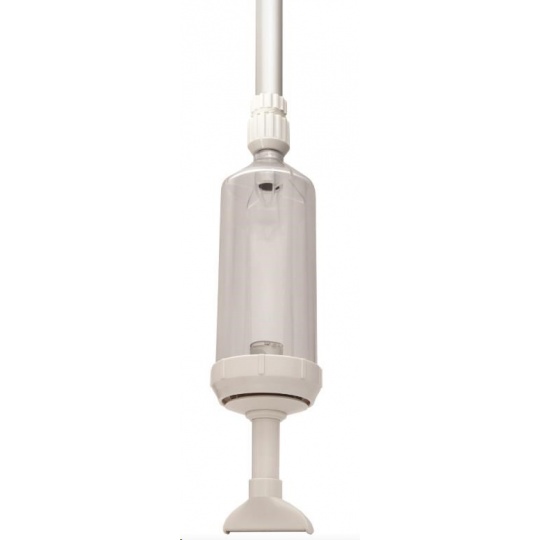 Pracuje na principu podtlaku, kdy prstem utěsníte otvor na konci teleskopické tyče, vložíte vysavač do vody na místo, kde jsou nečistoty. Poté uvolníte otvor a nečistoty ze dna budou vysáty do průhledného válce..