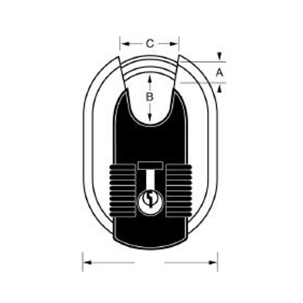 Tělo z nerezové oceli s titanovou úpravou odolné proti korozi a poškození. Skrytý třmen z kalené oceli o průměru 7 mm odolný proti přeřezání. Vložka se 4 stavítky. Dvojitá západka odolná proti vypáčení.