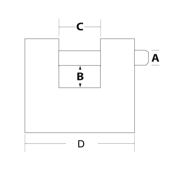 Obdélníkový visací zámek o šířce 80 mm a tloušťce 30 mm.