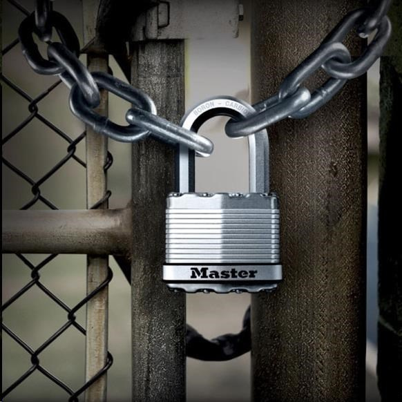 • Visací zámek o šířce 64 mm s tělem z vrstvené oceli zpevněný titanem pro vyšší odolnost a spolehlivost.