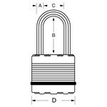 - Visací zámek o šířce 50 mm s tělem z vrstvené oceli zpevněný titanem pro vyšší odolnost a spolehlivost.