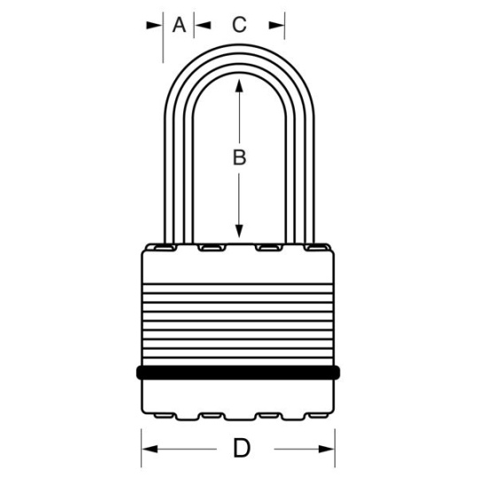 - Visací zámek o šířce 45 mm s tělem z vrstvené oceli zpevněný titanem pro vyšší odolnost a spolehlivost.