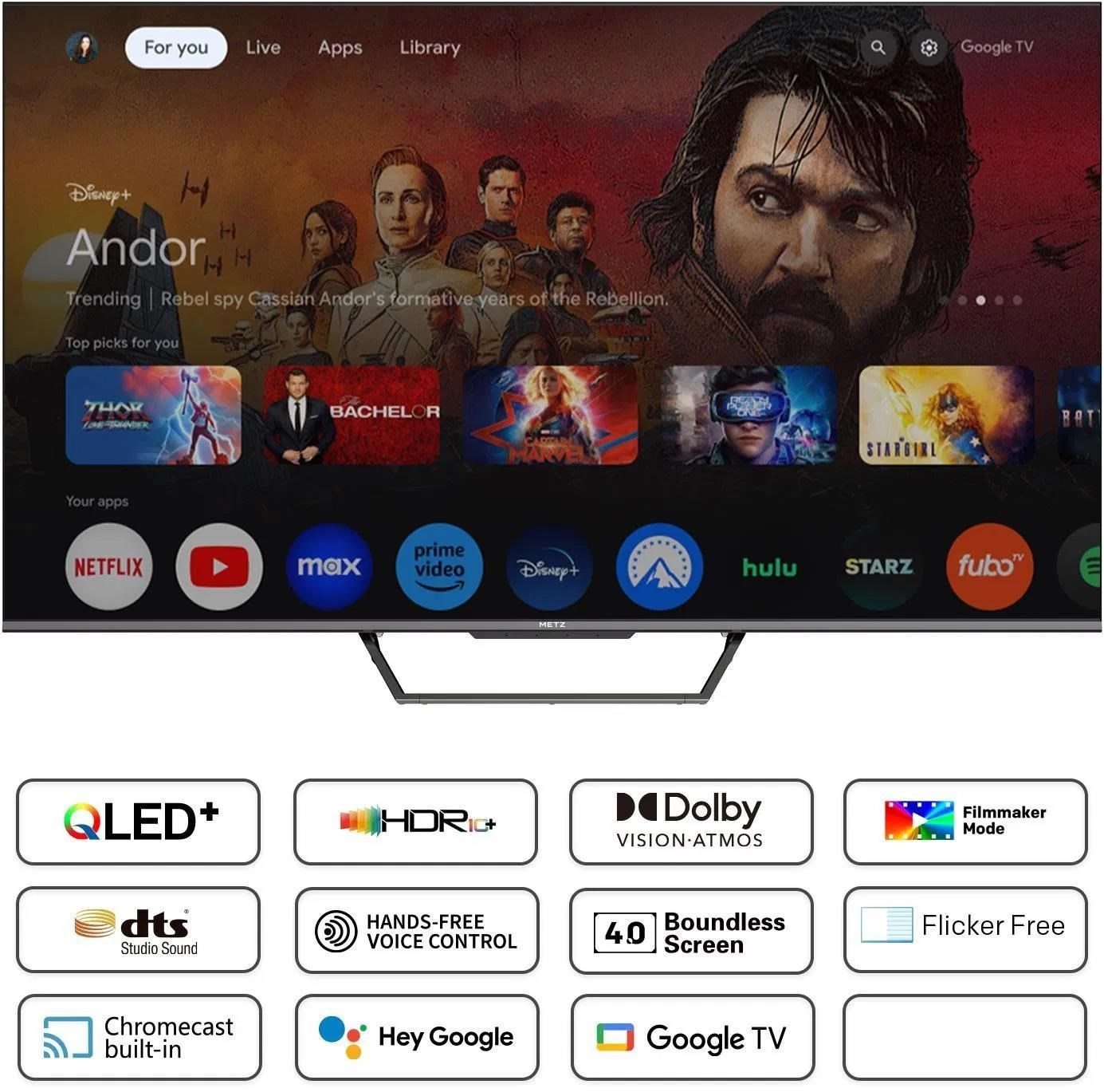 Metz 50MQD7500Z 50" TV, 4K Ultra HD, QLED, Google TV, HDR, WiFi, Bluetooth 5.1, Dolby Atmos