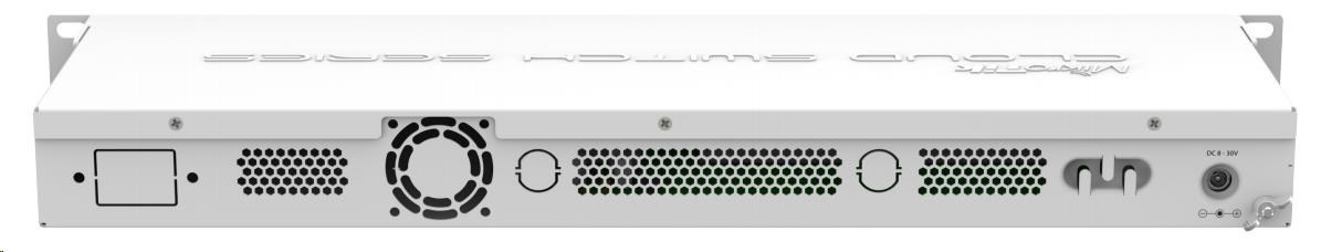 24 portový non-blocking gigabitový switch s web managementem. K dispozici jsou dále 2xSFP+ sloty. Je použit switch chip Marvell DX, operační systém SwOS zajišťuje základní funkcionality tak i pokročilé funkce: port-to-port forwarding, MAC filter, VLANy, mirror trafic, bandwith limitation,MAC and IP header fields.