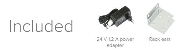 Balení obsahuje: CloudSmartSwitch CSS326-24G-2S+RM, napájecí zdroj, úchyty do racku