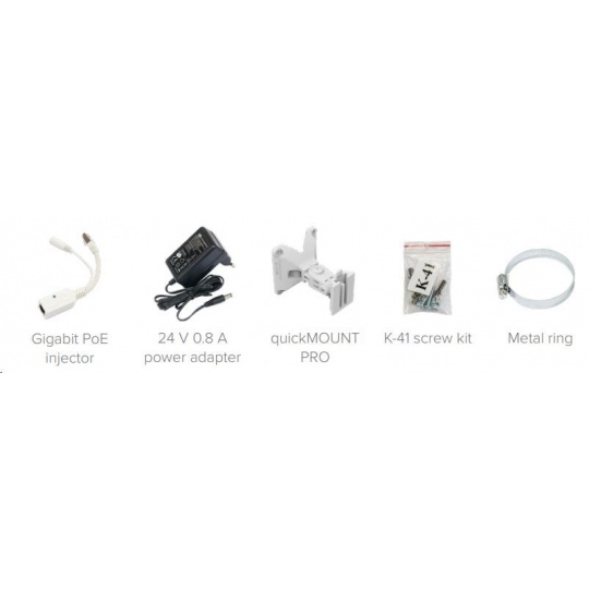 Balení obsahuje: mANTBox 2 12s, Gigabit PoE injektor, napájecí zdroj, montážní sada na stožár(zeď), quickMOUNT pro