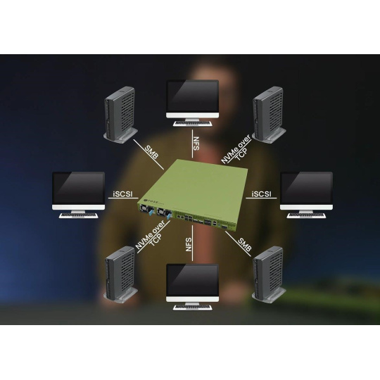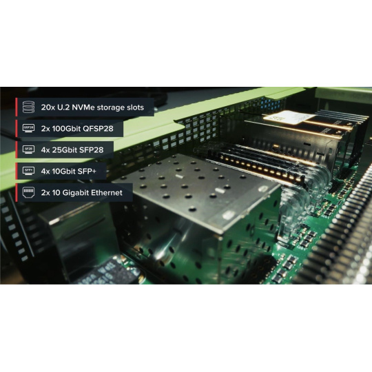 A high-performance, all-in-one storage, networking, and container platform designed for enterprise environments. Third parties control your data. Should they? Your business, your files, your future – handed over to external providers with unclear policies and unknown risks. Stop relying on the cloud. Own your infrastructure. Introducing the Rose Data Server (RDS2216) – a high-performance, all-in-one storage, networking, and container platform designed for enterprise environments. Secure, scalable, and under your control. WHY CHOOSE RDS2216? • 20 U.2 NVMe storage slots – Ultra-fast, high-density storage for demanding workloads. • 100G high-speed networking – 2× 100G QSFP28 ports, 4× 25G SFP28 ports, 4× 10G SFP+ ports, 2× 10G Ethernet ports, and an extra SFF-8644 interface for flexible connectivity. • 16-core 2 GHz ARM CPU + 32GB DDR4 RAM – High-performance processing for networking, storage, and virtualization. • Massive energy savings – Cut power consumption and heat output while maintaining high performance – an eco-friendly solution for data-heavy environments. • Runs RouterOS – The most flexible, modular networking OS. Supports advanced storage capabilities, including exporting block devices over NVMe-TCP, encryption layers, and modular storage configurations for scalable infrastructure. No subscriptions. No paywalls. • Container & VM-ready – Run MinIO, Nextcloud, Shinobi, Frigate, and other applications with ease. We’ve added two USB ports for additional devices and further adaptability. • Includes dual hot-swappable power supplies – Ensuring uninterrupted operation and quick replacement without unnecessary downtime. ONE DEVICE. ENDLESS POSSIBILITIES It’s a breakthrough in flexible networking and storage for the most demanding enterprise environments. Reliable 100-Gigabit connectivity. Ultra-fast NVMe storage support. Containers. Enterprise-grade performance. Konektory a rozhraní Počet M.2 slotů 2 Počet U.2 PCIe slotů 20 Rychlost LAN (2) 1/2.5/5/10Gbps + (1) 10/100/1000Mbps management Rozhraní M.2 SATA, U.2 PCIe Gen3 Počet USB 2.0 1 Počet USB 3.0/3.1/3.2 Gen1 1 Napájení Typ napájení Ze sítě (230V) Redundantní napájení Ano Max. spotřeba energie [W] 286 Fyzické charakteristiky Provedení Rackmount Počet "U" pozic 1 Provozní teplota [°C] -20 až 50 Hloubka [mm] 476 Šířka [mm] 443 Výška [mm] 44 Hardware Počet podporovaných HDD 22 Formát disku M.2 2280, 2.5" CPU AL73400 Frekvence CPU [MHz] 2000 Počet CPU jader 16 Interní uložiště 32 MB + 128 MB RAM 32 GB Obecné Podpora rozšiřovacích jednotek Ano Software Operační systém RouterOS - L6