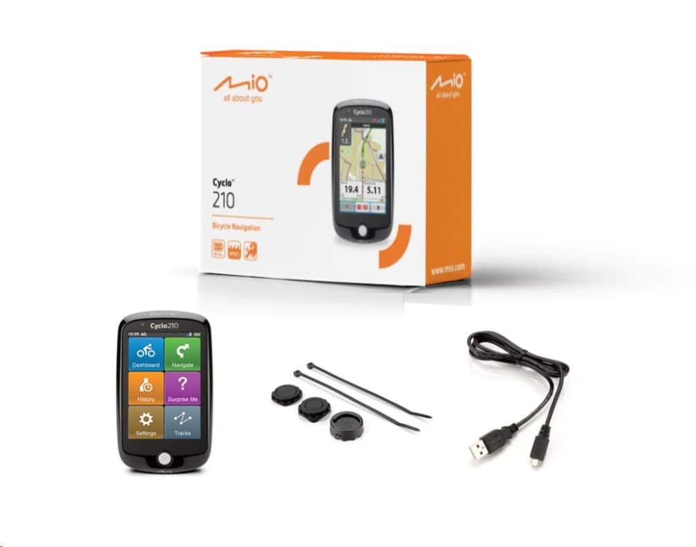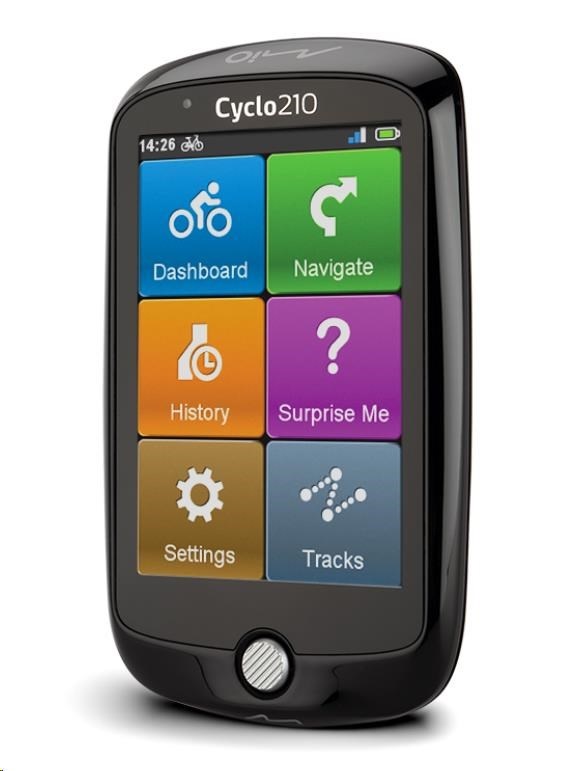 Navigace na kolo Cyclo™ 210 má intuitivní rozhraní a je uživatelsky komfortní, takže během několika minut budete moci vyrazit na kole na cesty.