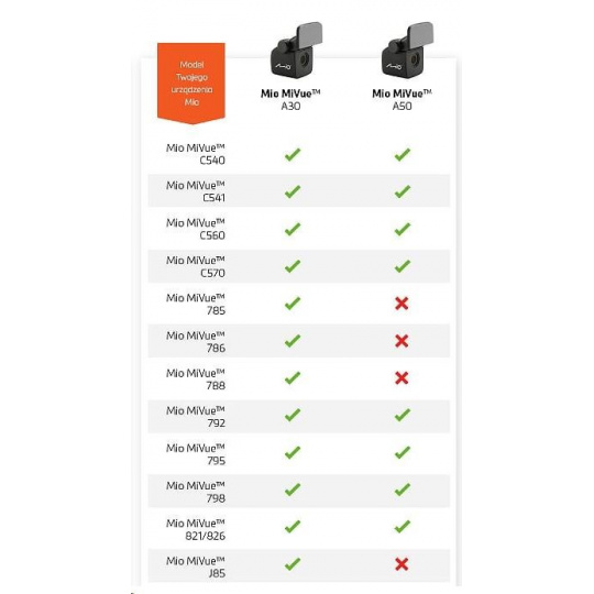 Kamera není kompatibilní s modely MiVue J85, 785, 786 a 788!